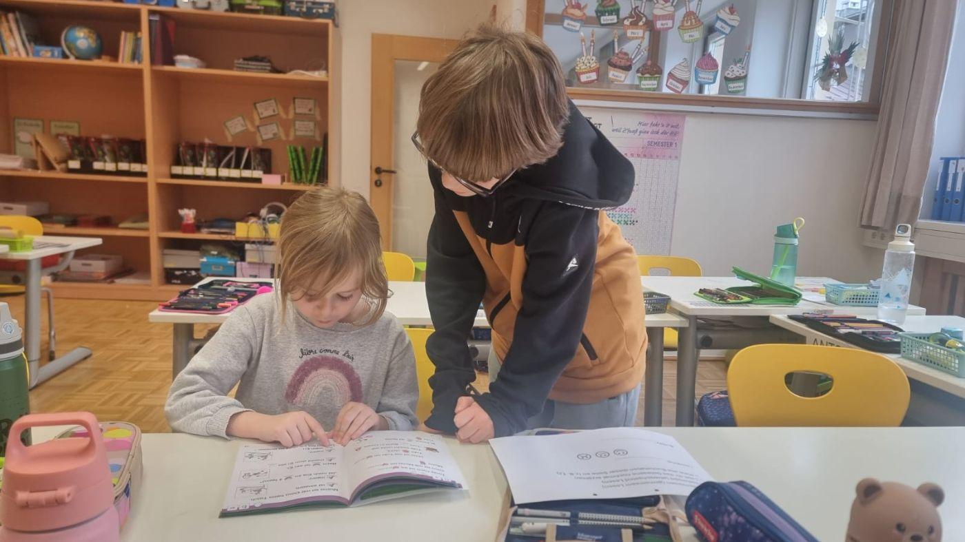Lesesbuddy-Stunde der 4. und 1. Klassen